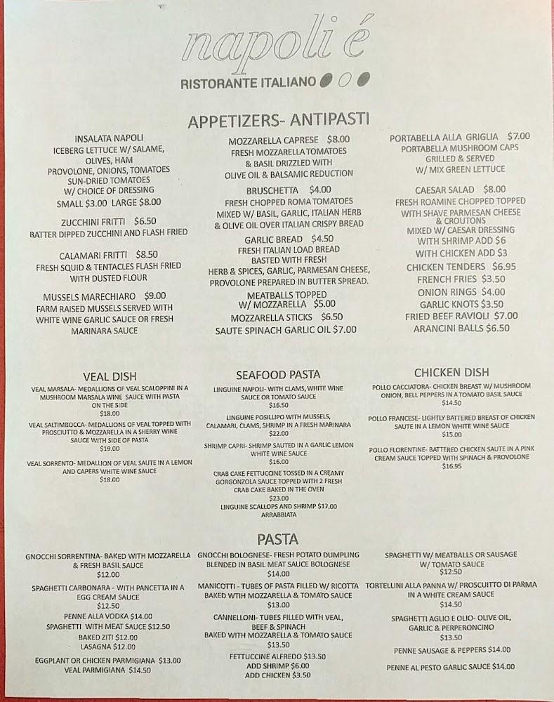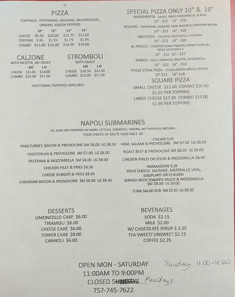 Welcome to Napoli E Ristorante Italiano, the heart of authentic Italian cuisine in Carrollton, VA. Conveniently located at 13609 Carrollton Blvd, our restaurant offers an inviting atmosphere perfect for lunch, dinner, or a casual solo meal. Indulge in our diverse menu featuring delightful local specialties, delectable desserts, and the best pizza and subs available for takeout and delivery after 7:30 PM. We pride ourselves on quick service and accessibility for all guests. Join us to experience the tastes of Italy, complemented by a selection of wines and refreshing beverages. Your Italian feast awaits!